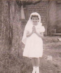 “Bless me, Father, for I have sinned. This is my first confession. These are my sins for which I’m very sorry.” I don’t bow my head like Sister Mary John told us. Instead, I stare through the black curtain separating the priest from me and try to see his face, but it’s as dark as the bottom of a barrel in the confessional box, and I can’t see a thing. Father smells like a wet dog, but I take a deep breath and start to recite the list of sins I’ve memorized. “I yell at my sister. I chase the chickens around the manure pile, and they get scared and won’t lay eggs and we don’t have anything to eat with our bacon. I hide Granny’s teeth in the sugar bowl. I chew black licorice until my jaws hurt. I hide in the room above the kitchen and listen through the stovepipe to the grownups talk instead of minding my own business. I pretend I’m dusting the floor when I’m really listening to the Top 40 hits on the radio.” Father coughs.